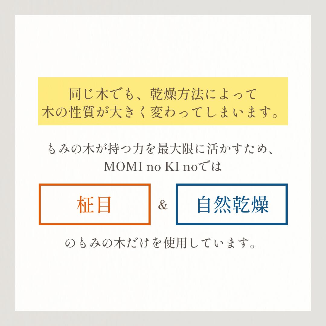 MOMI no KI noでは、「自然乾燥」したもみの木を使用しています。