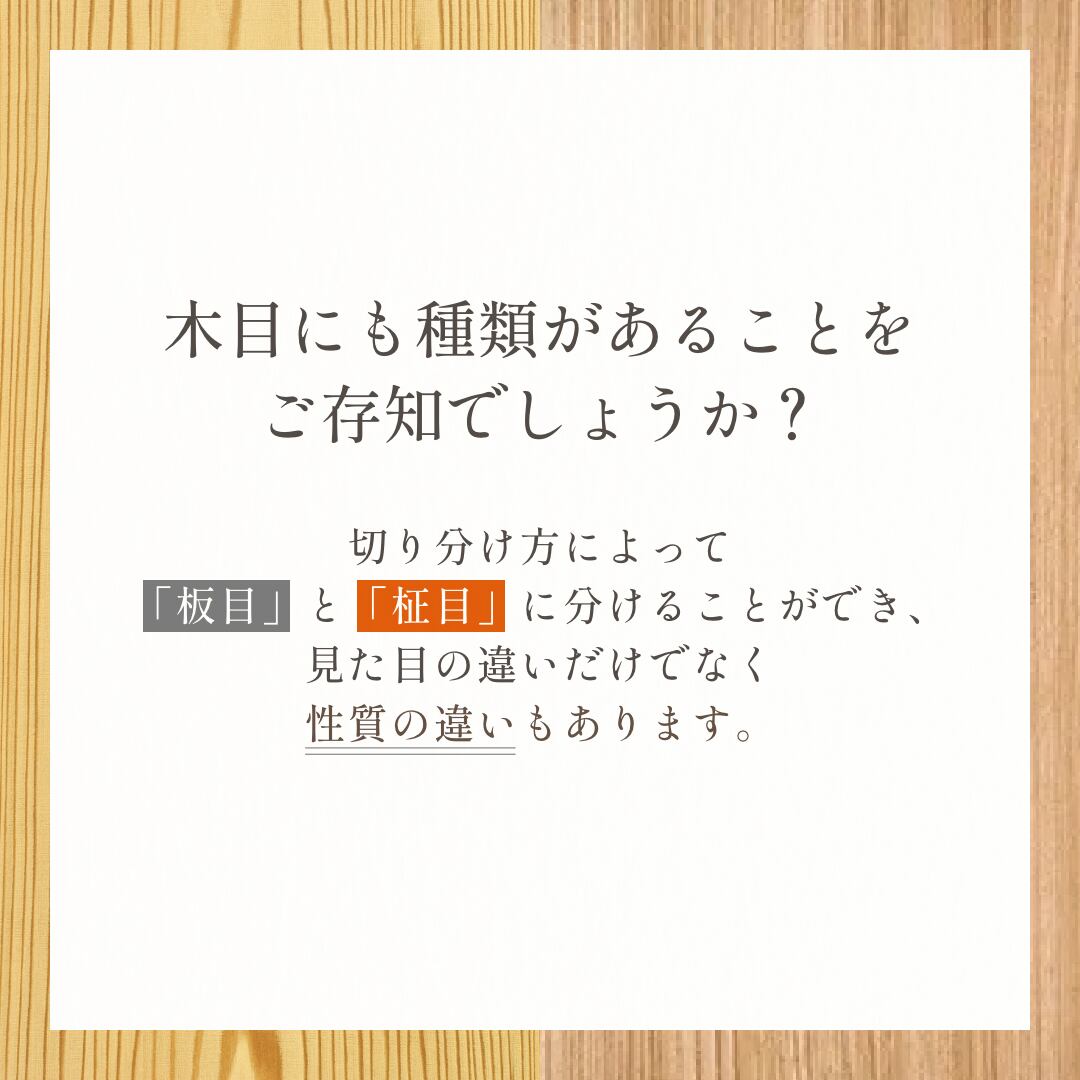 実は、木目にも種類があり、「板目(いため)」と「柾目(まさめ)」に分けることができます。