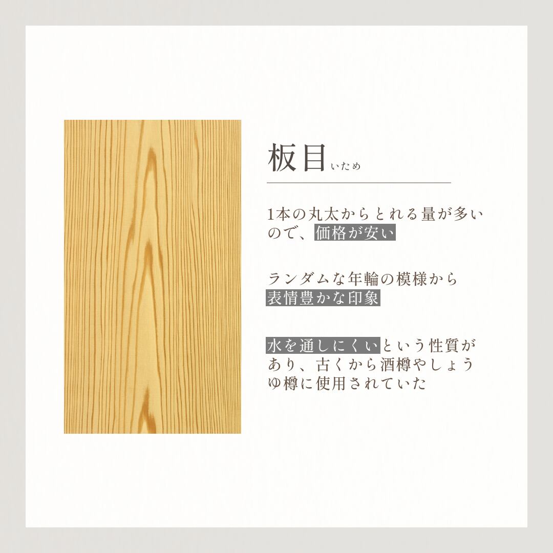 実は、木目にも種類があり、「板目(いため)」と「柾目(まさめ)」に分けることができます。